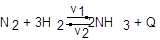 Как же следует объяснить результаты проведенного опыта? Здесь, по-видимому, нужно вспомнить, что с увеличением давления растет число столкновений частиц газа со стенками сосуда, в котором находится газообразное вещество. Чем больше частиц, тем больше столкновений. Но при синтезе аммиака, как известно, из 1 молекулы азота и 3 молекул водорода образуется 2 молекулы аммиака, т.е. число частиц в системе уменьшается в 2 раза. Увеличение давления равносильно как бы увеличению числа частиц в системе. Для восстановления равновесия число частиц в системе должно уменьшаться, а это возможно при условии смещения равновесия в сторону синтеза аммиака (см. рис.3). Таким образом, система как бы противодействует оказываемому внешнему воздействию.