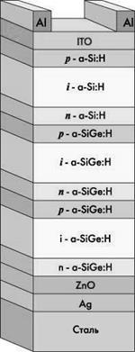 | Рис.16. Трехкаскадный солнечный элемент на основе сплавов a-SiGe:H |