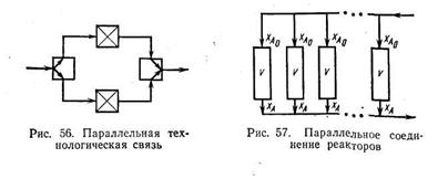 Параллельная технологическая связь - это такая связь, когда выходящий из i-гo элемента ХТС поток разбивается на несколько параллельных подпотоков (рис. 1, б). Параллельная технологическая связь применяется для повышения мощности, надежности, гибкости ХТС, а также при параллельном получении на базе одного исходного вещества двух или нескольких продуктов.