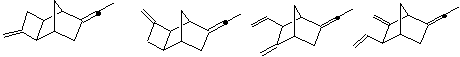 Новые соединения при использованиии АФ имеют массы 134, 174 и 176. Очевидно они образуются при гидрировании I, II, V, VI. Гидрированию преимущественно подвергаются соединения, имеющие активную внутрициклическую двойную связь (I и II), или вещества, содержащие винильные группы (I, V, VI). Продукты гидрирования метиленовых групп в указанных условиях не наблюдаются.