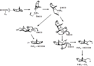 Помимо указанных соединений обнаружены продукты присоединения АФ к НБД (XIII и XIV), а также в незначительных количествах (2 – 5%) норборнен. В газовой фазе обнаружено до 3% углекислого газа СО2.