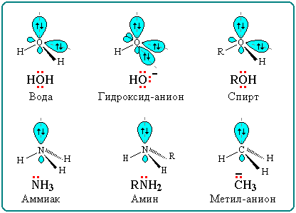 Нуклеофильные ("любящие ядро") реагенты, или нуклеофилы - это частицы (анионы или молекулы), имеющие неподеленную пару электронов на внешнем электронном уровне.