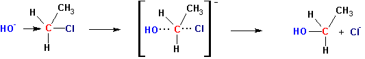 Основополагающий вклад в изучение реакций замещения у sp3-гибридизованного атома углерода внес Ингольд. Классическим примером реакции нуклеофильного замещения является превращение алкилгалогенида в спирт: