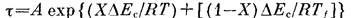 — соответствующая энергия активации; X — параметр нелинейности процесса (0<Х<1, Х=1 в линейной области); 0<[5<1 — феноменологическая мера ширины спектра времен релаксации (Р = 1 при единичном времени релаксации); R— газовая постоянная; 7\ (>ГС