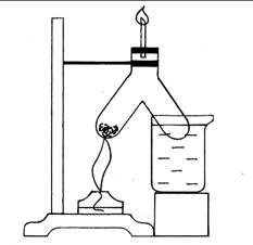 Оборудование и реактивы: Штатив с лапкой, спиртовка, спички, резиновые прокладки, сосуд Ландольта, пробка со вставленной в нее стеклянной трубкой, синий лакмус, химический стакан, стружки сухого дерева.