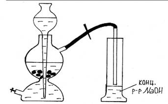 2. Концентрированную щелочь приливать в цилиндр под тягой. 3. Соблюдать технику безопасности при зарядке аппарата Киппа.