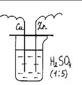 3. Оборудование и реактивы: Химический стакан на 200 мл, крышка со вставленными в нее электродами (медным и цинковым), гальванометр, раствор серной кислоты (1:5).