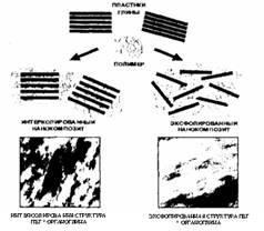Рис. 8. Формирование интеркалированной и эксфолированной структуры нанокомпозитов