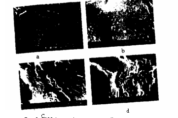 а - 0 % (чистый ПБТ); b - 3% органоглины в ПБТ; с - 4 % органоглины в ПБТ; d - 5% органоглины в ПБТ Гладкая поверхность говорит о равномерном распределении частиц органоглины. Поверхность нанокомпозита становится деформированной при увеличении содержания органоглины (см. рис.10 а, Ь, с, d). Возможно, это влияние агломератов глины [30, 31].