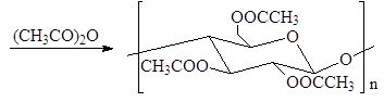 Действием на целлюлозу уксусным ангидридом в уксусной кислоте получают растворимый в ацетоне ацетат целлюлозы:
