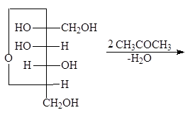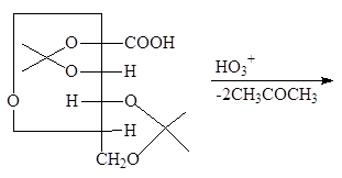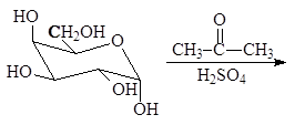 Углеводы образуют циклические ацетали и кетали лишь в том случае, когда вицинальные гидроксильные группы находятся в цис-положении по отношению друг к другу. Например, α-D-галактопираноза реагирует с ацетоном следующим образом: