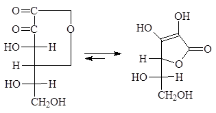 Промышленный способ получения аскорбиновой кислоты основан на микробиологическом окислении сорбита в L-сорбозу. Защитив четыре гидроксильные группы L-сорбозы кетализацией ее окисляют перманганатом калия и после гидролиза продукта окисления получают 2-оксо-L-гулоновую кислоту. Последняя переводится в лактон, существующий в енольной форме и представляющий собой L-аскорбиновую кислоту. Раствор аскорбиновой кислоты обладает кислой реакцией (pKa = 4,17) и сильными восстановительными свойствами. Суточная потребность взрослого человека в витамине С составляет примерно 30 мг.