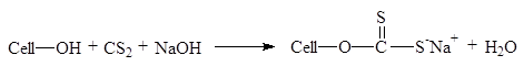 Исходным сырьем для производства является древесная целлюлоза, содержащая 95-99% высокомолекулярной целлюлозы со степенью полимеризации 800-1100. Ее обрабатывают 20%-ным раствором NaOH (мерсеризация) в течение 10 мин при 50о С. Полученную таким образом щелочную целлюлозу отделяют от лигнина и оставляют на созревание, при котором молекулярный вес целлюлозы уменьшается. Далее щелочную целлюлозу обрабатывают СS2 и получают ксантат целлюлозы: