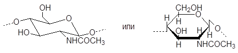 С-2 хитина вместо гидроксильной находится ацетамидная группа:
