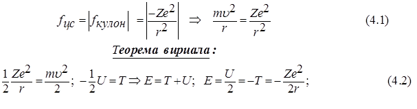 По теореме вириала соответственно квантованы значения полной энергии (2.9). Результирующее выражение для дискретных энергетических уровней называется формулой Бора.