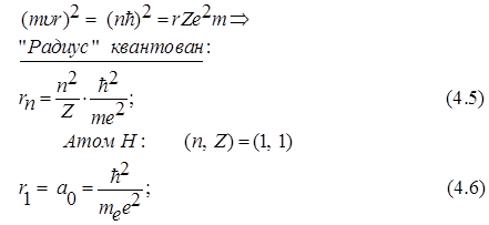 Величина a0 = 0.529 Ao называется боровским радиусом. В полуклассической квантовой теории он считается радиусом первой круговой орбиты, на которой электрон движется в основном квантовом состоянии, но эта примитивная картина требует коррекции. Её содержание будет раскрыто лишь в квантовой механике.