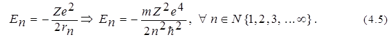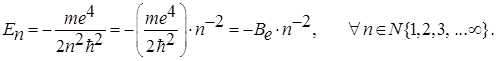 Окончательно формула полной энергии предписывает дискретные значения, зависящие от внешнего "чужого" целочисленного параметра - числа nÎN(1,2,3,…),