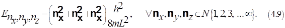 Каждое состояние (в квантовой механике – каждая волновая функция) характеризуется тройкой независимых квантовых чисел (nx, ny, nz).