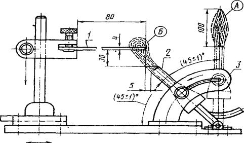 Рис. 2.1. Устройство газовой горелки Бунзена: 1 - образец; 2 - горелка Бунзена; 3 - поворотное приспособление.