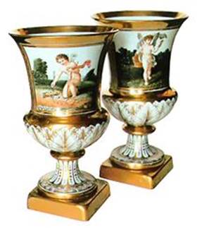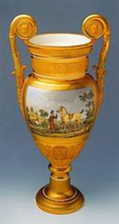 Круг сюжетов русского фарфора первой трети 19 века определяется историческими событиями и мироощущением этого времени. Это: Отечественная война 1812 года и современная мода, как в костюме, так и в литературе. |
