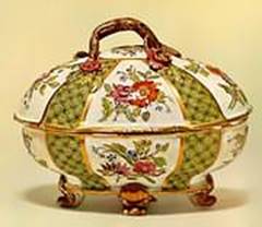 От обычного или твердого фарфора отличается мягкий фарфор , из которого изготовляют главным образом художественные изделия. В мягком фарфоре содержится меньше каолина и соответственно этому больше «плавней», например, полевого шпата, мела. Такой фарфор в соответствии с его легкоплавкостью подвергают обжигу при менее высокой температуре (обычно при 1200-1300˚) . Поэтому легко удается произвести его многоцветное подглазурное раскрашивание.