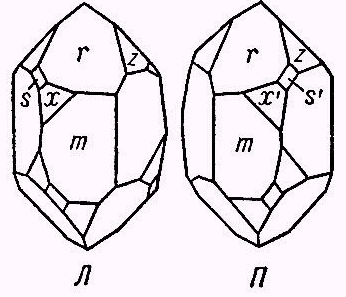 Рис.1 Правый и левый кварц. Рис.2 Кремнезёма минералы.Рис.3 Кварц (структура)