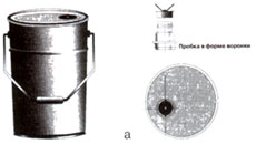 а - канистра конической формы с твердой пробкой в виде воронки;