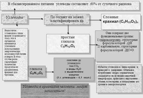 К углеводной группе, кроме того, примыкают и плохо перевариваемые человеческим организмом клетчатка и пектины.