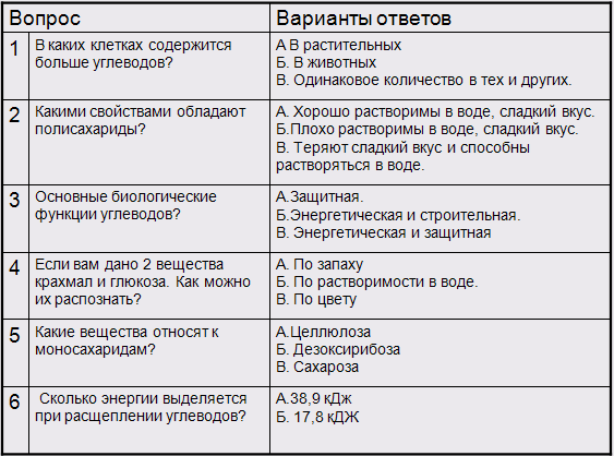 | Группы углеводов | Особенностистроения молекулы | Свойства углеводов |