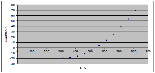 5. При термодинамическом анализе мы выбрали условия проведения процесса, т.е. На всем температурном интервале реакция является экзотермической (идет с выделение тепла). Реакция необратимая и идет самопроизвольно.