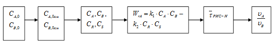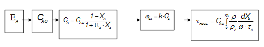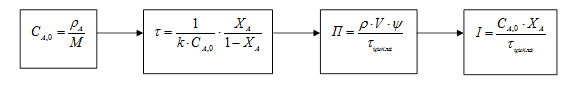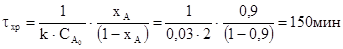 1 Определим время пребывания реакционной смеси в реакторе идеального смешения и его объём: