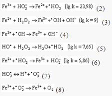 Fe2+ + H2O2 => Fe3+ + OH- + ·OH (радикал гидроксила)