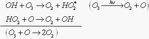2) дополнительное количество ОН радикала в тропосфере дает реакция О3 с НО2 , который образуется по нескольким реакциям (о них ниже)