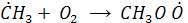 Взаимодействие алкильного (метильного) радикала с О2 дает пероксильный радикал: