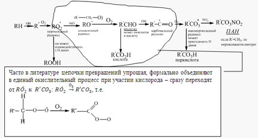 Давая ацилпероксидный радикал, который в конечном итоге приводит к образованию важнейших (с точки зрения воздействия на ОС) продуктов веществ группы ПАН – пероксиацилнитратов.