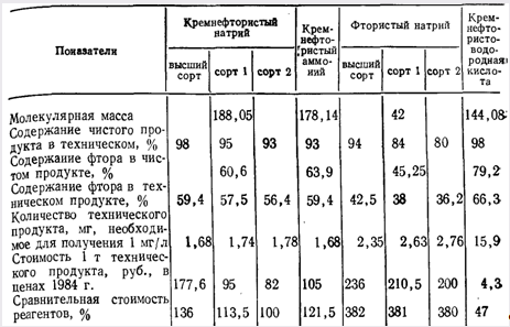 Для фторирования питьевой воды может быть использован ряд фторсодержащих соединений, таких как кремнефтористый натрий NaSiFe, кремнефтористая кислота H2 SiF6 , фтористый, натрийNaF, кремнефтористый аммоний[(NH4 )2 SiF6 , фтористый кальцийCaF6 , фтористоводородная кислотаHF, кремнефтористый калий K2 SiF6 , кремнефтористый алюминийк, фтористый алюминийAIF3 и ряд других (табл. 16.1).