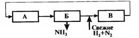 Функциональная схема синтеза аммиака: А – синтез NH3 ; Б – выделение NH3 ; В – компрессия и рециркуляция
