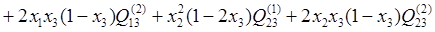 220 LET z2 = z2 + 2 * x2 * x3 * (1 - x2) * q1(2, 3) + (x3 ^ 2) * (1 - 2 * x2) * q2(2, 3)