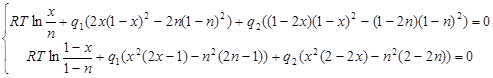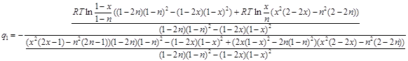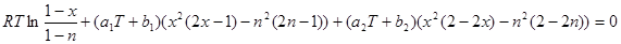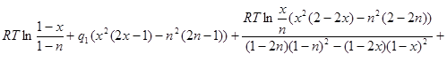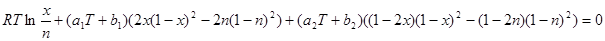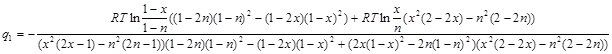 180 LET e = 8.3144 * t * LOG(x / n) + q * (2 * x * (1 - x) ^ 2 - 2 * n * (1 - n) ^ 2)