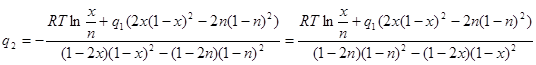 210 LET z2 = rt * LOG(x2) + 2 * x1 * x2 * (1 - x2) * q2(1, 2) + (x1 ^ 2) * (1 - 2 * x2) * q1(1, 2)