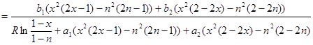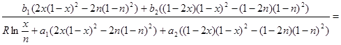 130 LET a = 8.3144 * t * LOG((1 - x) / (1 - n)) * ((1 - 2 * n) * (1 - n) ^ 2 - (1 - 2 * x) * (1 - x) ^ 2)