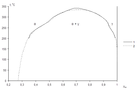 2.2 Расчёт купола расслаивания твёрдого раствора Cu–Ni