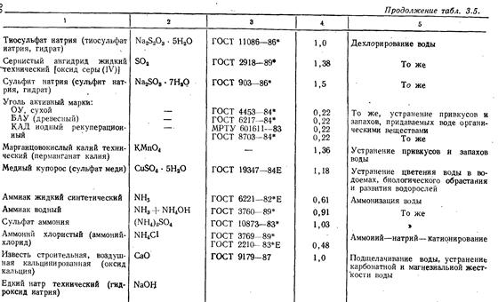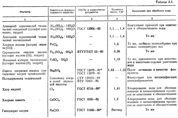 Помимо коагулянтов и флокулянтов в технологии улучшения качества воды применяют много других реагентов, о которых дает представление табл.1 .5