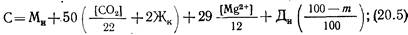 где С - количество взвеси, образующейся при умягчении воды (в пересчете на сухое вещество), мг/л.