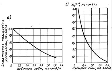 Поэтому рекомендуется принимать избыток извести не более 0,5 мг-экв/л. Зависимость остаточной жесткости воды от дозы извести приведена на рис. 2, б.