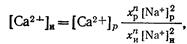 Уравнение обмена между ионами [Ca2+ ], содержащимися в исходной воде, и ионами [Na+ ] в мембране имеет вид