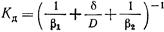β1 и β2 - соответствующие коэффициенты скорости переноса вещества в концентрированном растворе к мембране и от нее в разбавленном; б - толщина мембраны; D - коэффициент диффузии растворенного вещества.