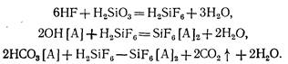 Фторидный метод обескремнивания воды (рис. 22.3) специальными реагентами дает возможность использовать слабоосновные аниониты. Этот метод состоит в том, что дозируемые в обрабатываемую воду плавиковая кислота или фторид натрия переводят кремниевую кислоту в сильную кремнефтористоводородную, которая достаточно полно поглощается слабоосновными анионитами:
