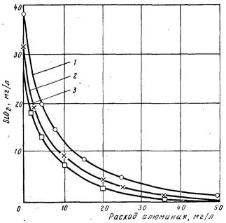 Концентрация остаточной кремниевой кислоты при использовании алюмината натрия составляет 0,5 ... 2 мг/л; расход алюмината — 150 ... 200 мг/л. Применение вместо алюмината натрия более дешевого сульфата алюминия уменьшает глубину декарбонизации и увеличивает содержание сульфатов, что нежелательно для вод, идущих на питание паровых котлов.