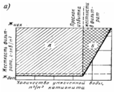 При пропуске воды сверху вниз через слой катионита происходит ее умягчение, заканчивающееся на некоторой глубине. Слой катионита, умягчающий воду, называют работающим слоем или зоной умягчения. При дальнейшем фильтровании воды верхние слои катионита истощаются и теряют обменную способность. В ионный обмен вступают нижние слои катионита и зона умягчения постепенно опускается. Через некоторое время наблюдаются три зоны: работающего, истощенного и свежего катионита. Жесткость фильтрата будет постоянной до момента совмещения нижней границы зоны умягчения с нижним слоем катионита.